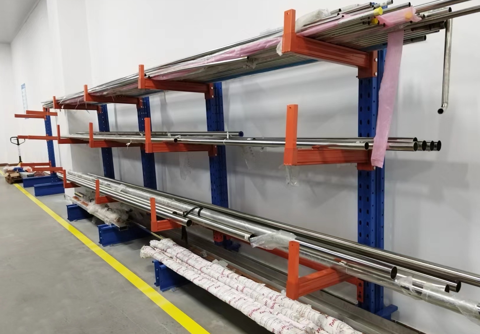 對于雙面懸臂式貨架不銹鋼管擺放凌亂,鋼管進(jìn)出困難,并影響人員車輛走動(dòng)的問題,團(tuán)隊(duì)通過變更成2個(gè)單面懸臂式貨架,并將貨架移位靠墻壁擺放解決問題。改善后,不銹鋼管進(jìn)出通暢,不影響人員車輛移動(dòng),同時(shí)減少了安全隱患。