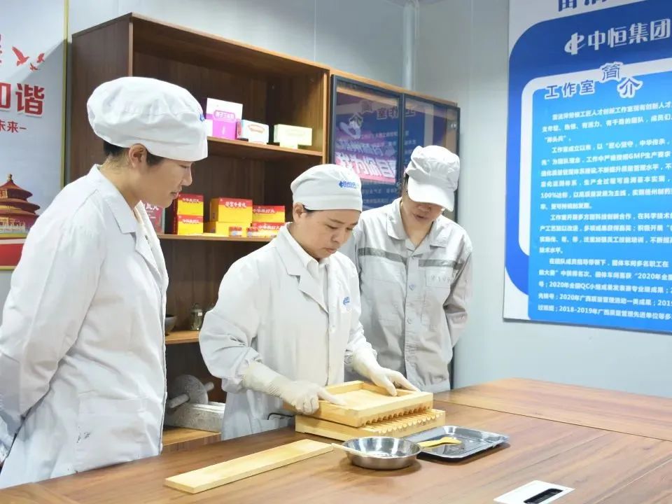 2023年,中華跌打丸制作技藝入選第九批自治區(qū)級(jí)非物質(zhì)文化遺產(chǎn)。雷潔萍作為傳承人代表之一,一直致力于保護(hù)和傳承中華跌打丸文化。她積極投身于中華跌打丸工藝革新工作,持續(xù)加入二次開(kāi)發(fā)、質(zhì)量標(biāo)準(zhǔn)提升、現(xiàn)代藥理藥效研究、新功效開(kāi)展等科研實(shí)踐活動(dòng),并在2021年創(chuàng)立了市級(jí)“雷潔萍勞模工匠人才創(chuàng)新工作室”,帶頭開(kāi)展非遺保護(hù)、工藝革新、“名師帶徒”、崗位練兵。