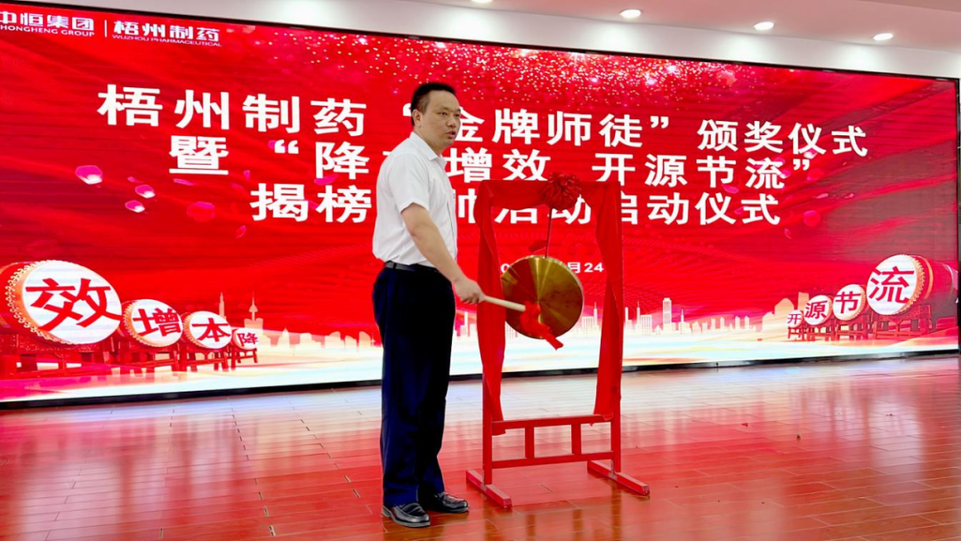 “鐺”......隨著一聲清脆的銅鑼聲響起,標(biāo)志著梧州制藥今年的一項(xiàng)重磅活動(dòng)“降本增效 開源節(jié)流”揭榜掛帥活動(dòng)正式啟動(dòng)!