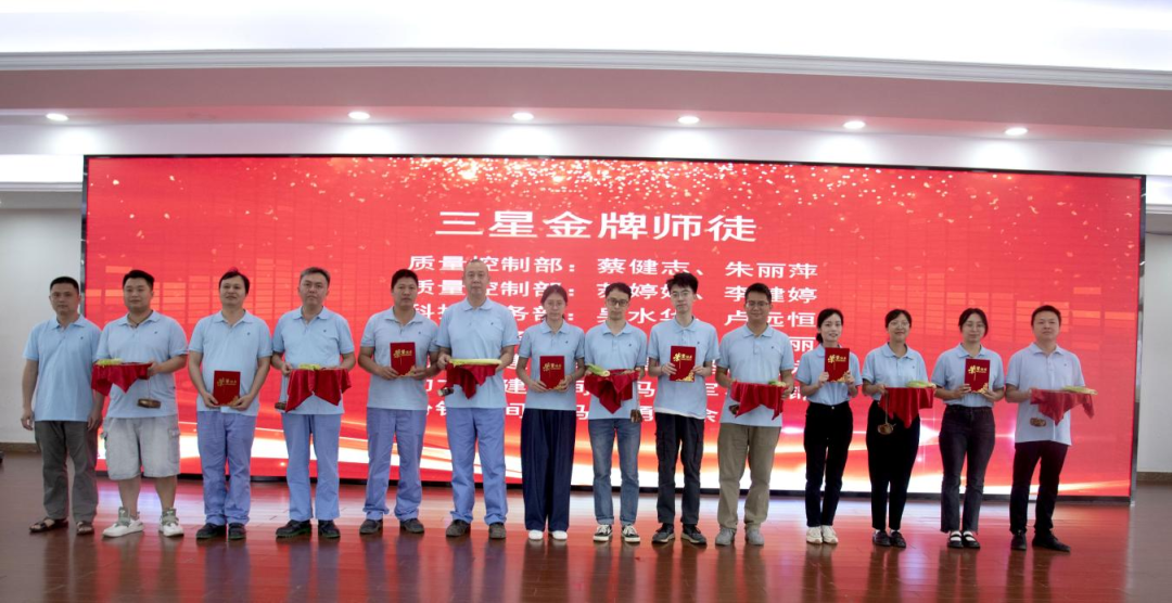 經(jīng)過近一年的評(píng)比角逐,分別評(píng)出三星、四星、五星等級(jí)的金牌師徒,獲評(píng)的星級(jí)師父們在會(huì)上光榮接受了公司領(lǐng)導(dǎo)班子為他們頒發(fā)的榮譽(yù)證書。一本本鮮紅的證書不僅僅是榮譽(yù),更是梧州制藥“造中華好藥”工匠精神代代傳承的最好見證。