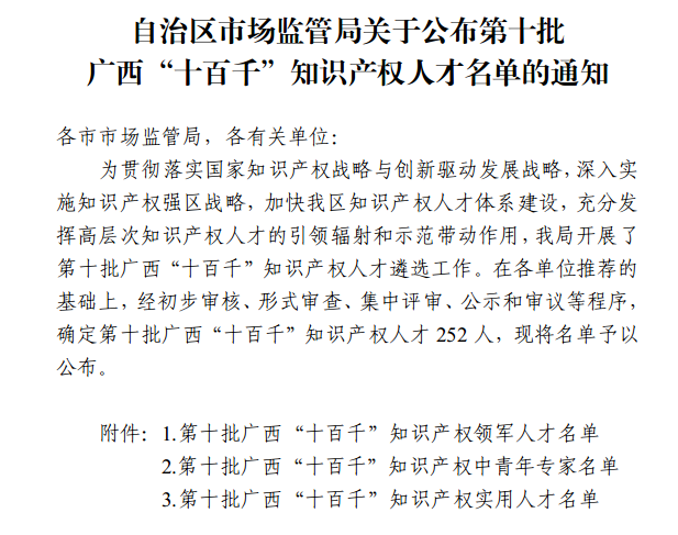 近日,自治區(qū)市場監(jiān)管局公布第十批廣西“十百千”知識(shí)產(chǎn)權(quán)人才名單,廣西梧州制藥(集團(tuán))股份有限公司副董事長、總經(jīng)理劉洋同志獲“A3企業(yè)知識(shí)領(lǐng)軍人才”稱號(hào),藥學(xué)事務(wù)部知識(shí)產(chǎn)權(quán)專員蒙永明同志獲“B3 企業(yè)知識(shí)產(chǎn)權(quán)中青年專家”稱號(hào)。