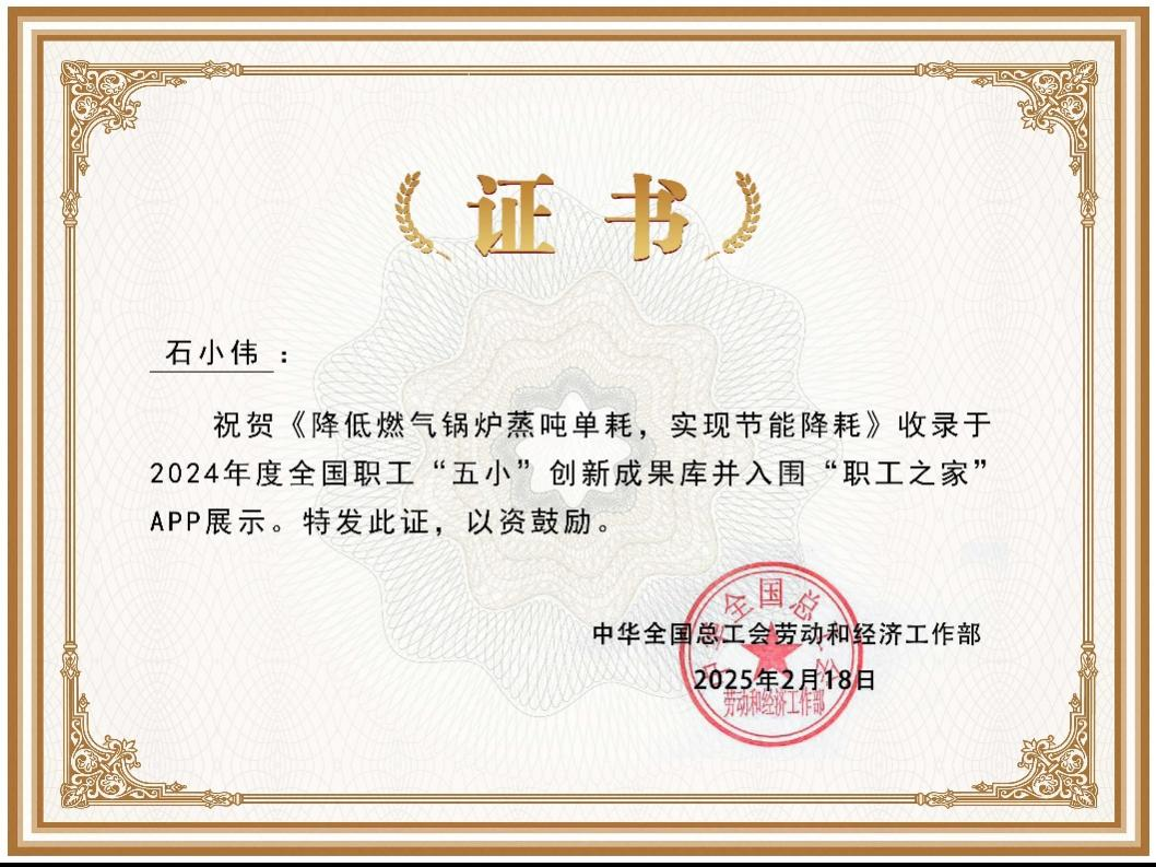 近日,全國總工會(huì)公布2024年度全國職工“五小”創(chuàng)新成果庫錄入名單。梧州制藥動(dòng)力基建車間憑借一招“省氣絕活”—— “降低燃?xì)忮仩t蒸噸單耗,實(shí)現(xiàn)節(jié)能降耗”,從全國3.4萬個(gè)參賽項(xiàng)目中脫穎而出,成功入選全國職工“五小”創(chuàng)新成果庫。這不僅是梧州制藥的“高光時(shí)刻”,更在全國總工會(huì)的“職工之家”APP上展示亮相,妥妥地秀了一把梧藥工人的創(chuàng)新實(shí)力。