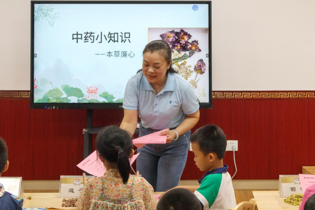 活動(dòng)以朗誦葉劍英家書開篇,家長(zhǎng)與孩子深情共讀,勾勒出一幅風(fēng)清氣正的和美畫卷。在“中藥小知識(shí)——本草廉心”小課堂里,工作人員展示淡竹葉、蓮子、荷葉等清心類藥材標(biāo)本,孩子們?cè)诩议L(zhǎng)陪伴下觀察形態(tài)、嗅聞氣味、參與趣味問答,感受中醫(yī)藥文化的獨(dú)特魅力,讓古老中醫(yī)藥文化在孩子們心中“鮮活”起來。