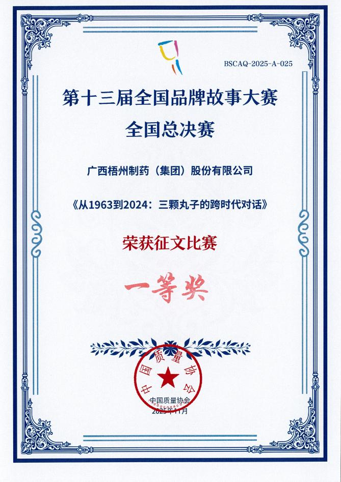 近日,以“創(chuàng)新賦能高質(zhì)量發(fā)展,品牌引領(lǐng)可持續(xù)未來(lái)”為主題的第十三屆全國(guó)品牌故事大賽全國(guó)總決賽圓滿落幕。廣西梧州制藥(集團(tuán))股份有限公司選送的作品《從1963到2024:三顆丸子的跨時(shí)代對(duì)話》,憑借深厚的品牌底蘊(yùn)、創(chuàng)新的敘事表達(dá)以及對(duì)中醫(yī)藥傳承創(chuàng)新的生動(dòng)詮釋,在全國(guó)2000余家企業(yè)的近千件入圍作品中嶄露頭角,成功斬獲全國(guó)總決賽征文比賽一等獎(jiǎng)。
