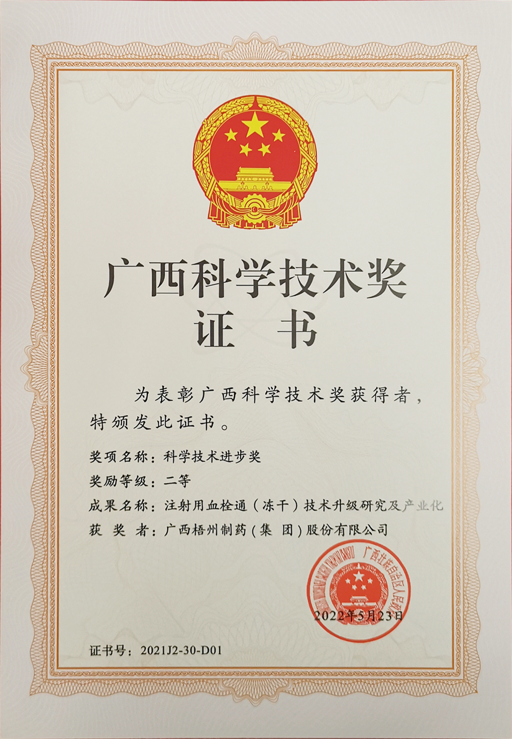 榮獲2022年廣西科學(xué)技術(shù)進(jìn)步獎(jiǎng)