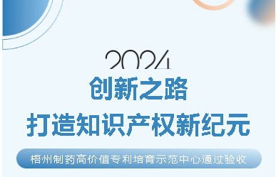 創(chuàng)新之路打造知識(shí)產(chǎn)權(quán)新紀(jì)元梧州制藥高價(jià)值專(zhuān)利培育示范中心通過(guò)驗(yàn)收前言近日,自治區(qū)市場(chǎng)監(jiān)管局發(fā)布關(guān)于自治區(qū)高價(jià)值專(zhuān)利培育示范中心驗(yàn)收結(jié)果的通報(bào),梧州制藥順利通過(guò)項(xiàng)目驗(yàn)收,成為梧州市首個(gè)自治區(qū)高價(jià)值專(zhuān)利培